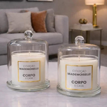 Vela aromática feita com cera de coco de alta qualidade e essência premium. Acompanha cúpula de vidro decorativa e oferece aproximadamente 40 horas de queima com fragrância envolvente.