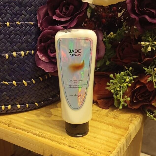 Apresentamos a nossa Luva de Silicone Jade com 120 gramas, em bisnaga transparente e etiqueta personalizada, para seu auto cuidado, hidratando suas mãos com elegância.