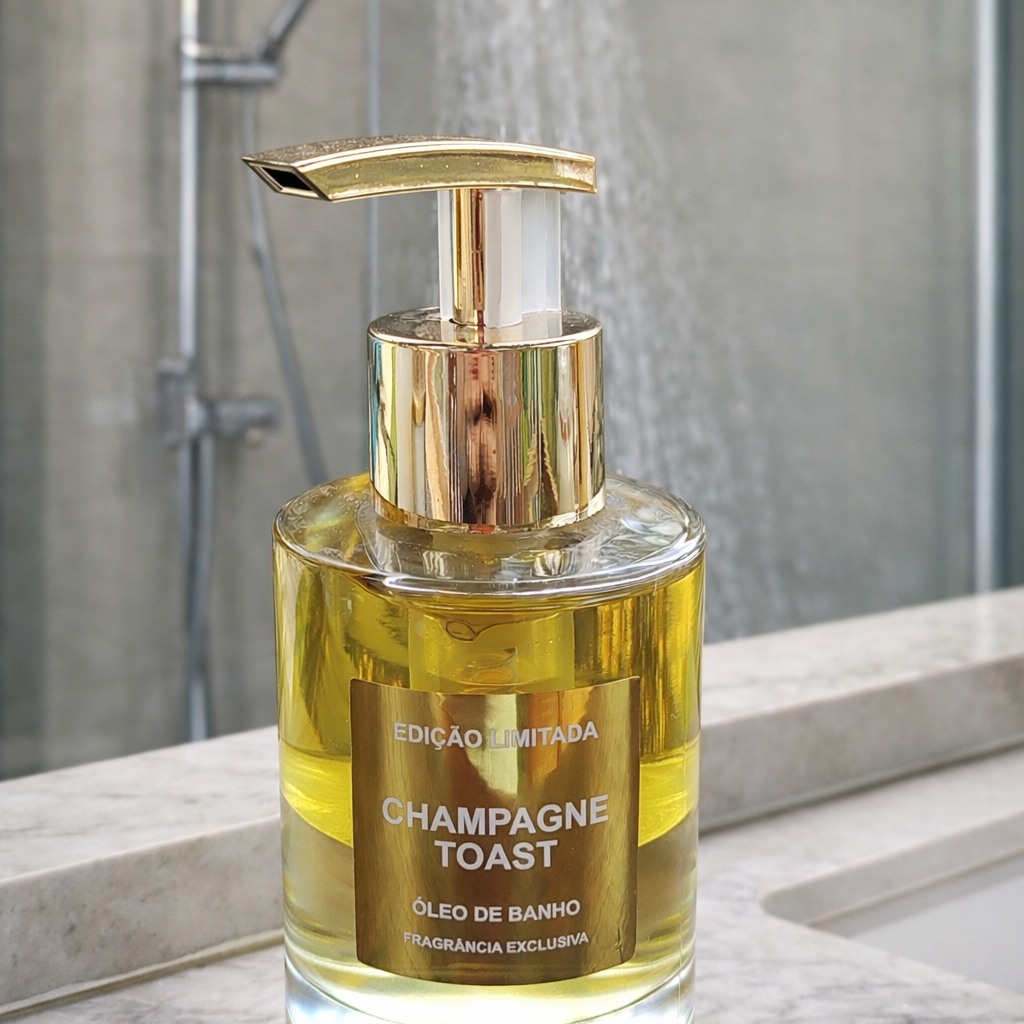 Com essência premium de alta qualidade champanhe toast, óleos hidratantes e extrato vegetal.