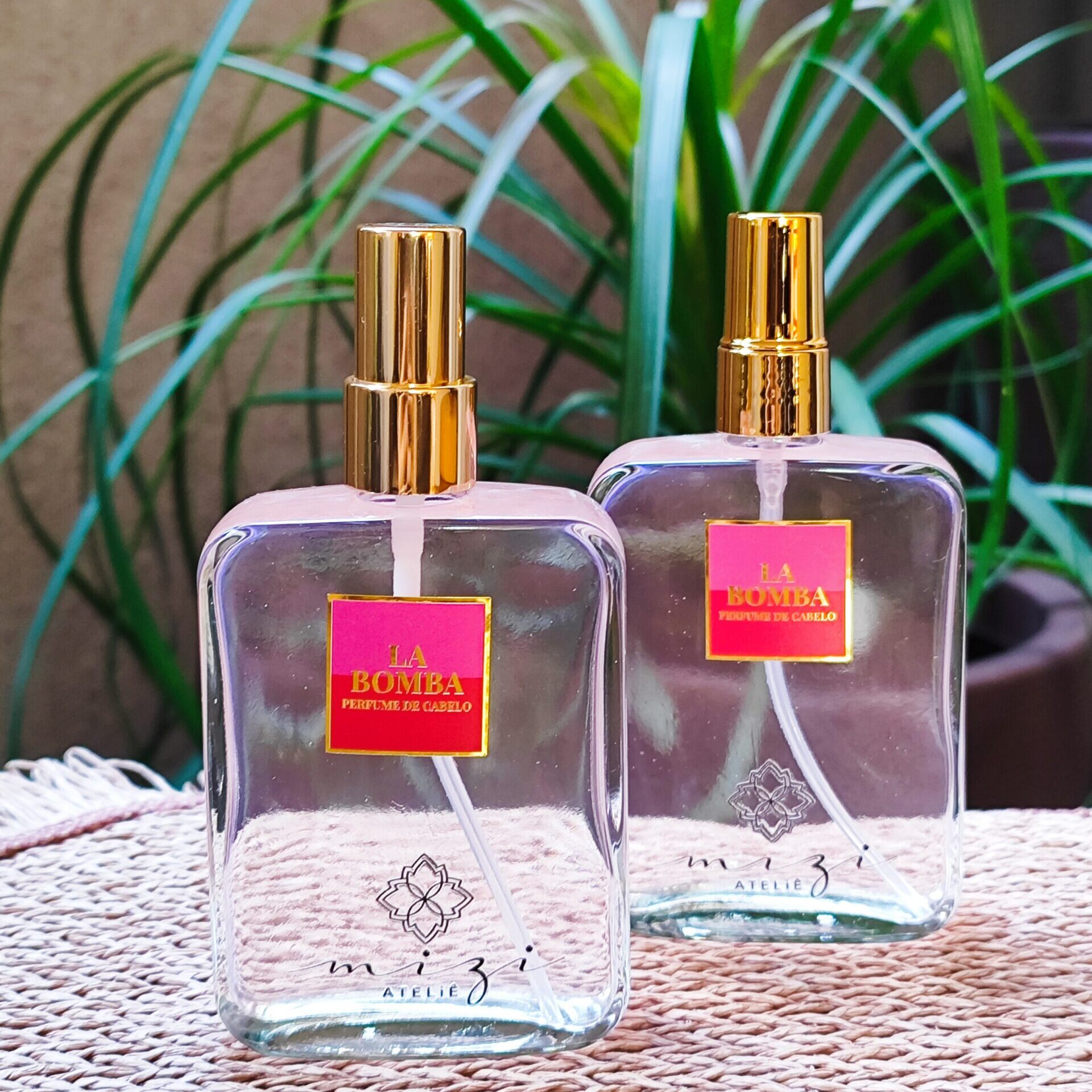 Apresentamos o nosso Perfume para Cabelo 100 ml, em vidro formato Chanel, com tampa dourada e etiqueta personalizada La Bomba, para compor com elegância sua prateleira de aromas.
