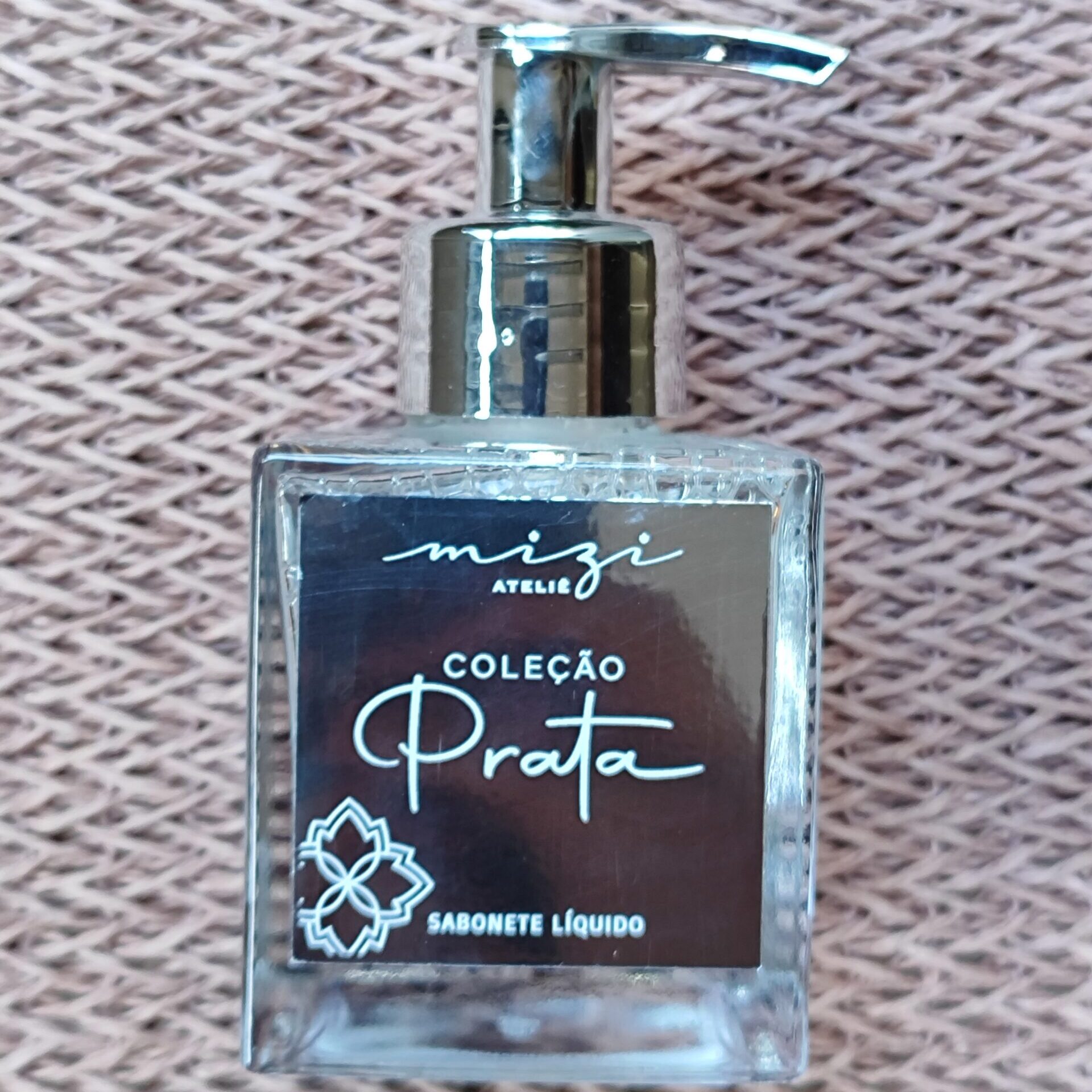 Apresentamos o nosso Sabonete Líquido de 100 ml, em vidro no formato cubo quadrado, com tampa prata e etiqueta personalizada da Coleção Prata para perfumar sua casa com elegância