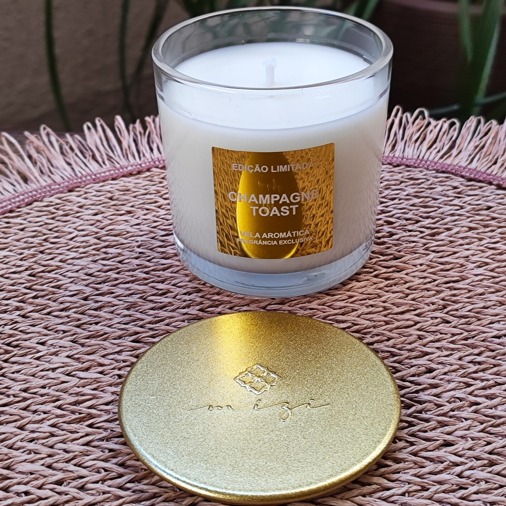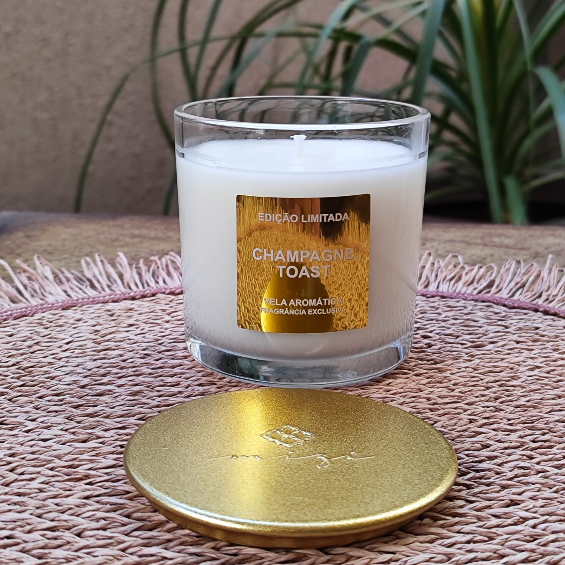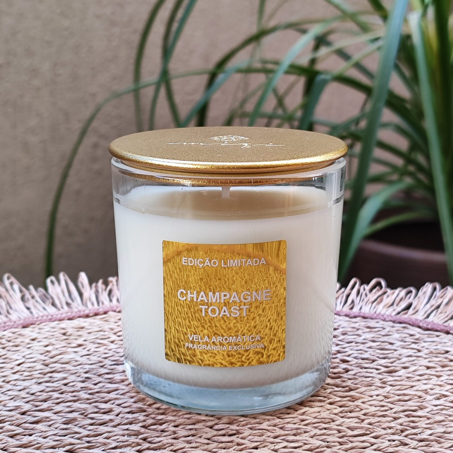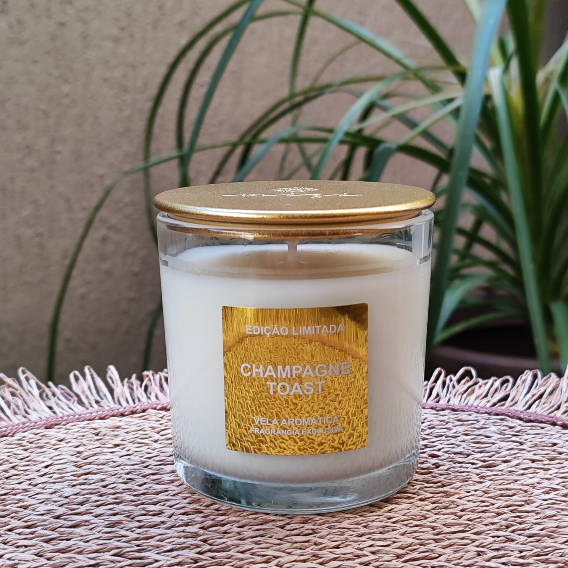 Apresentamos a nossa Vela 200g em um copo de vidro com tampa de alumínio e aroma de champanhe para despertar seus sentimentos e perfumar seu ambiente.