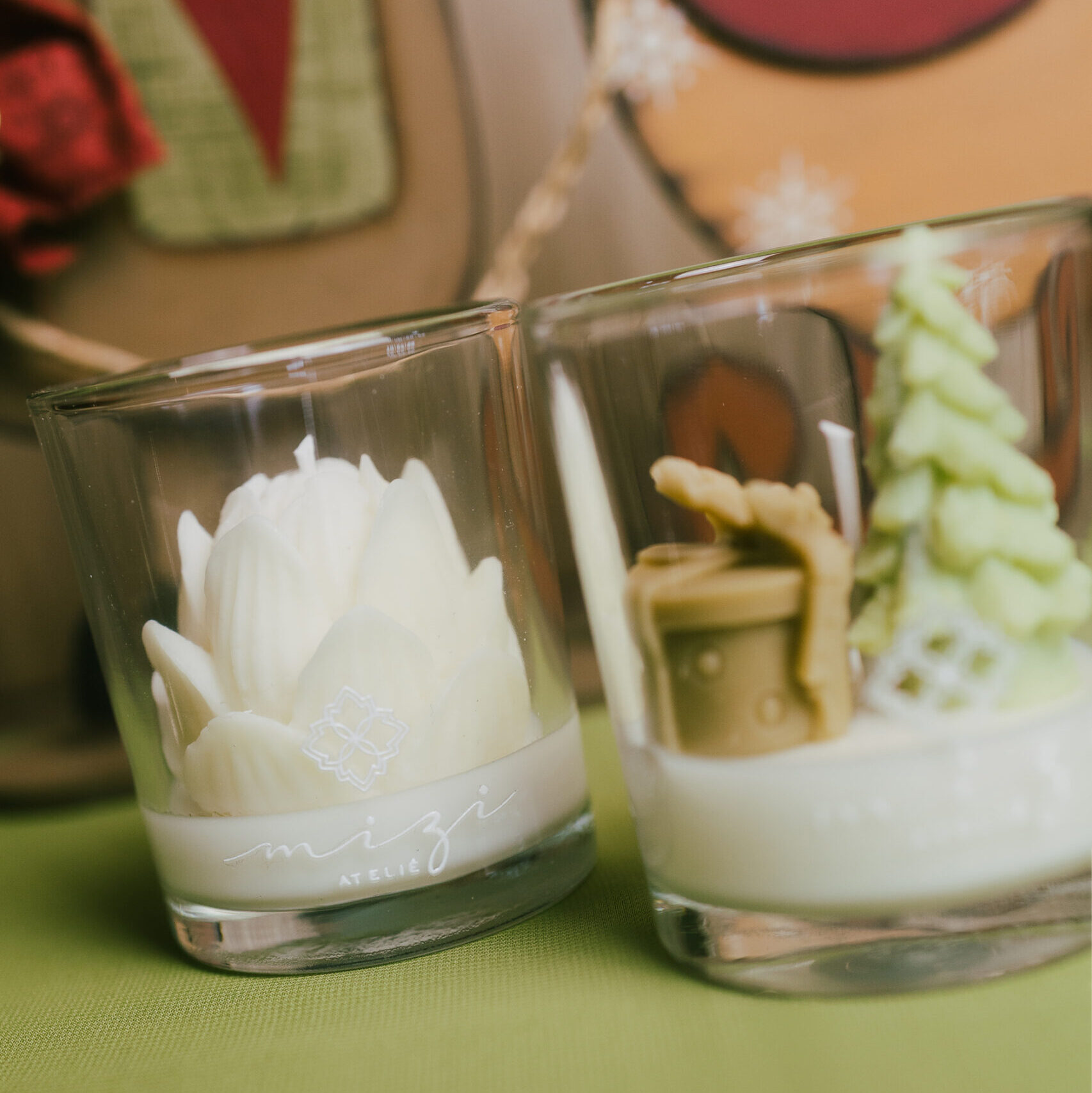 Seja em um momento festivo de natal ou no seu dia, a nossa vela em copo de vidro criará uma atmosfera acolhedora e cativante.