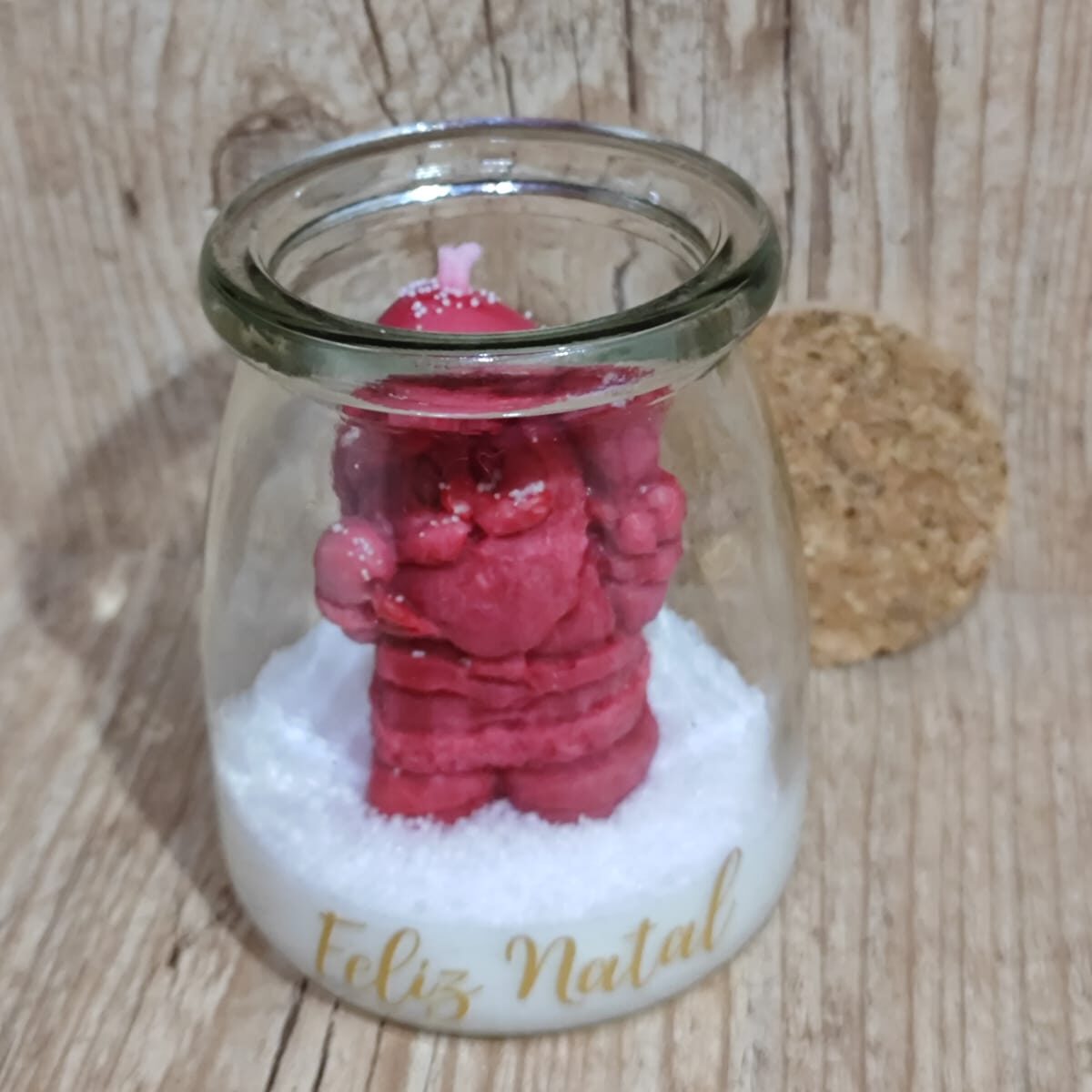 Permita-se relaxar e transformar seus espaços com esta vela natalina com decoração de papai noel.