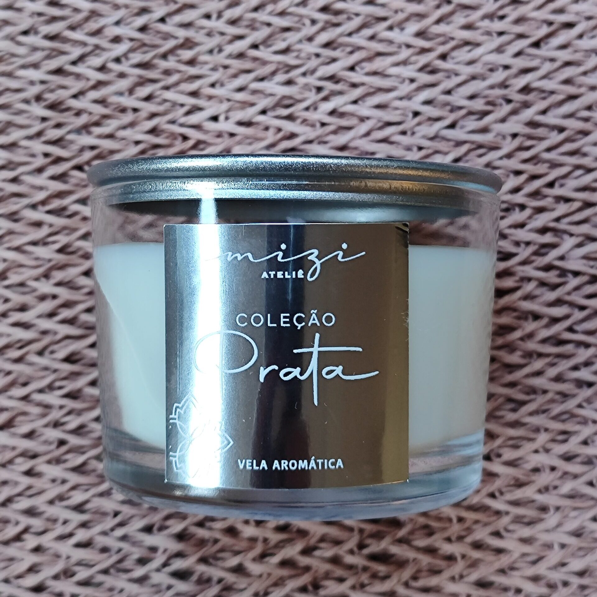 A tampa de alumínio prateada adiciona um toque de elegância ao recipiente, mantendo a vela protegida e preservando seu aroma.