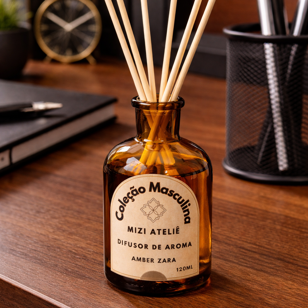 Com essência premium de alta qualidade: Sândalo ou Amber Zara