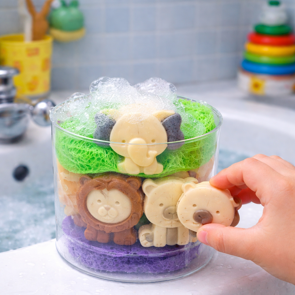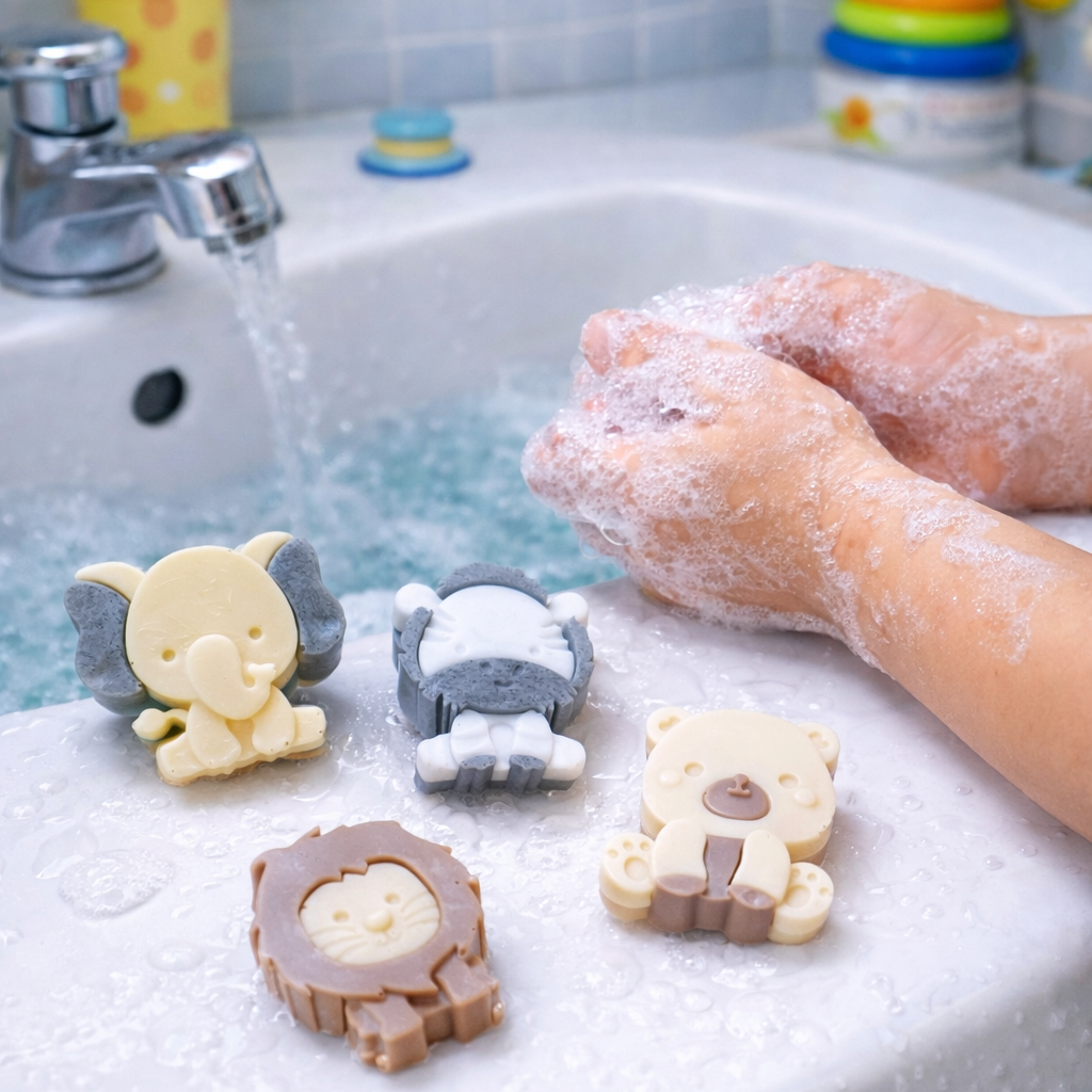 Cada sabonete é produzido com carinho e atenção aos detalhes, proporcionando hidratação e aroma suave e envolvente que transforma qualquer banho em diversão e alegria para as crianças.