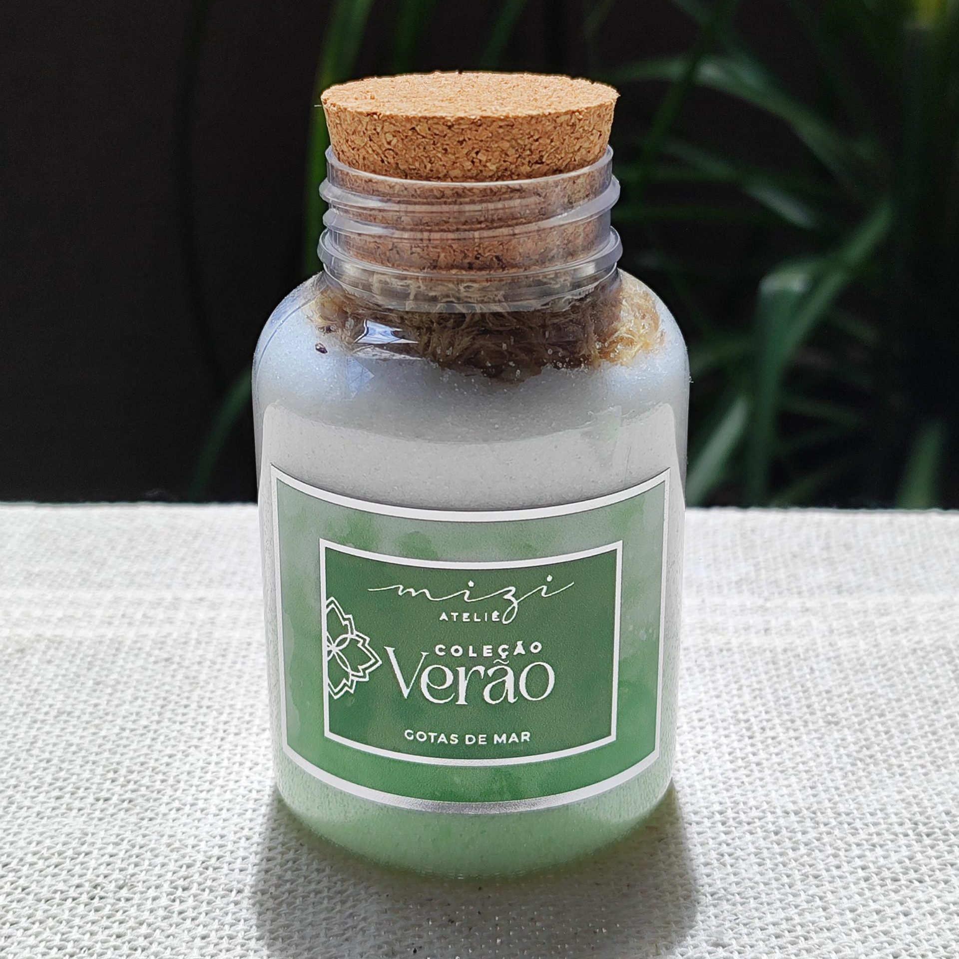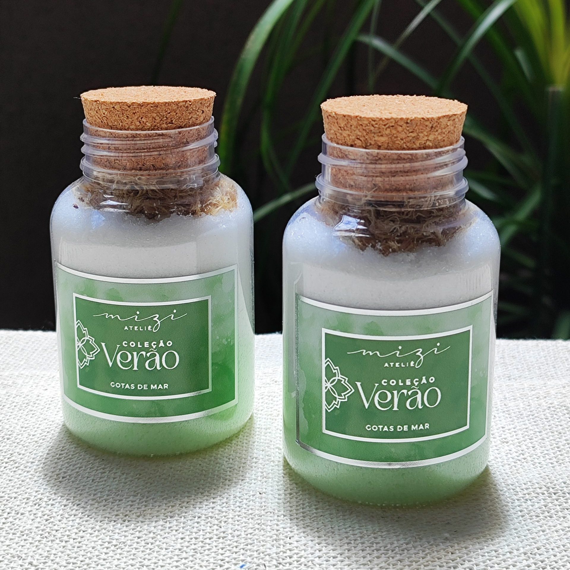 Apresentamos o nosso Sais de Banho Verão 170 gramas, em pote de plástico cilíndrico, com tampa rolha e etiqueta personalizada da Coleção Verão, para compor seu banheiro e para seu cuidado corporal diário.