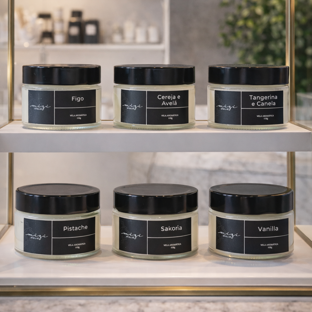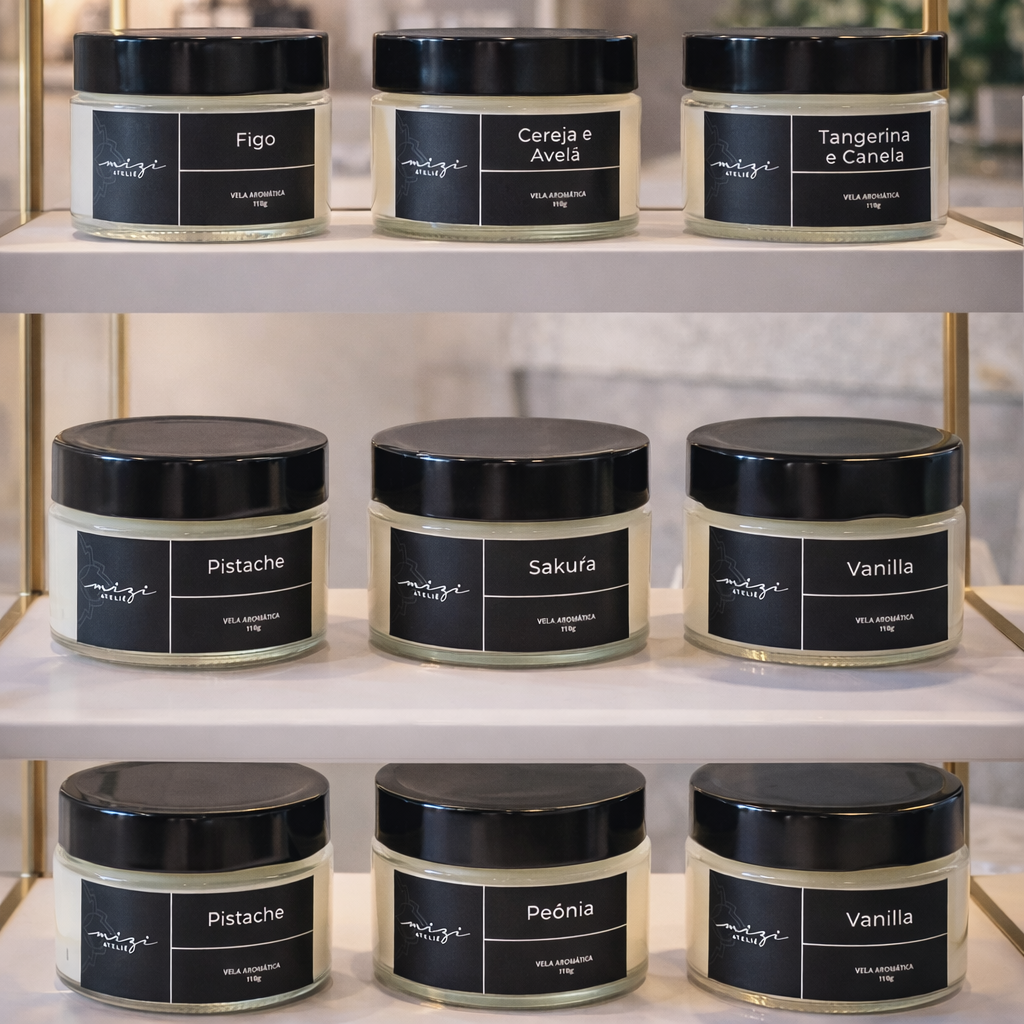 Encontre esta vela excepcional na Loja Mizi Ateliê e descubra como a combinação de elegância e fragrância pode enriquecer sua vida diária.