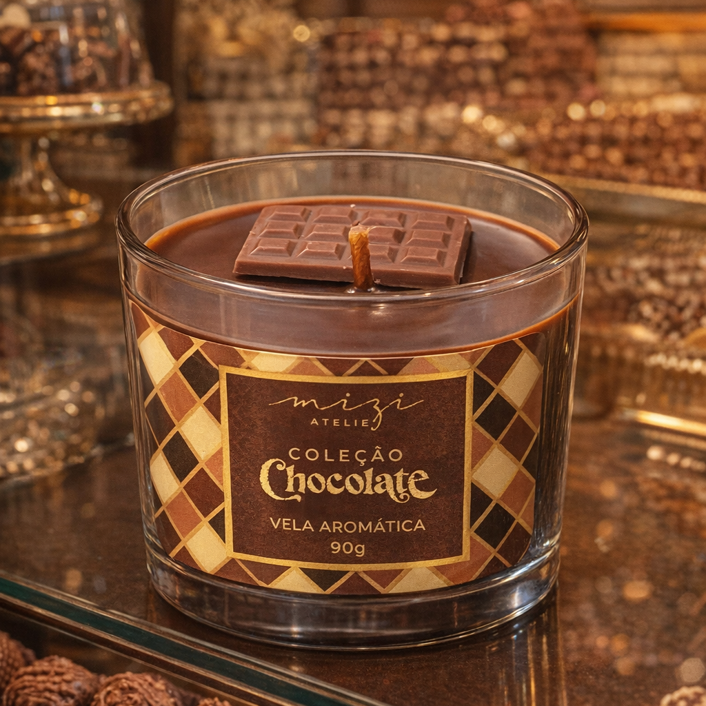 Experimente a combinação perfeita de elegância e aroma chocolate belga e rum, com nossa vela em copo de vidro 90g. Adornada com uma tampa de alumínio marrom, esta vela é um convite para momentos de tranquilidade e bem-estar. Encontre-a na Loja Mizi Ateliê e ilumine e perfume seu ambiente com sofisticação.
