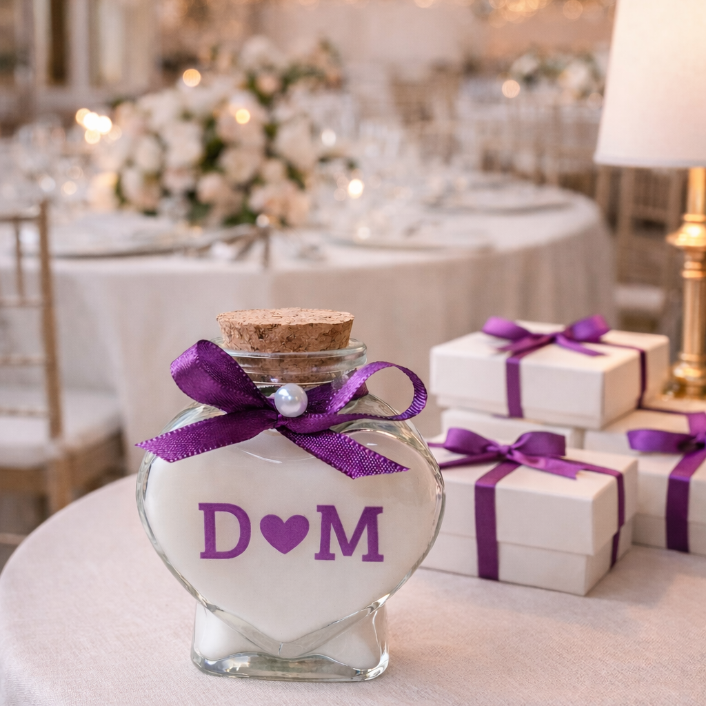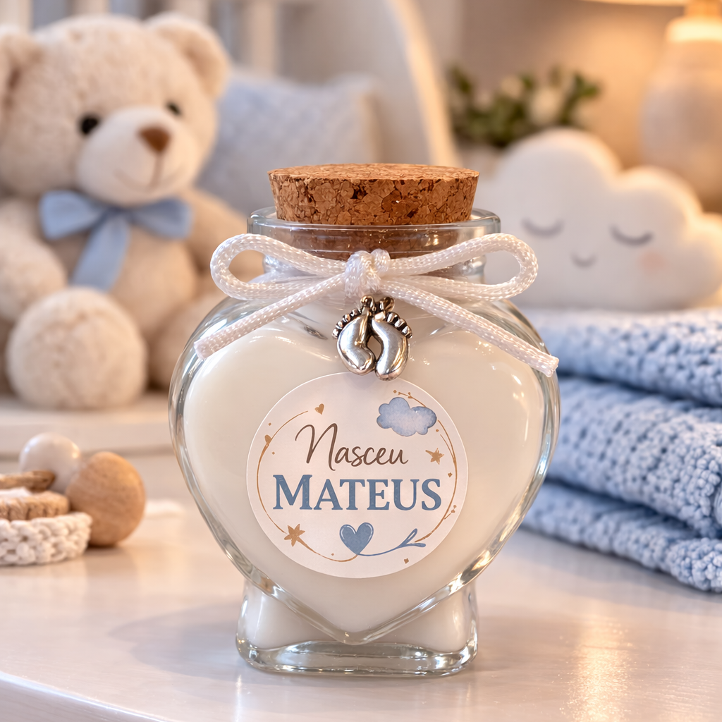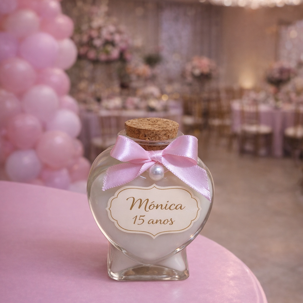 Vela com tampa rolha e vidro coração personalizado para seu evento