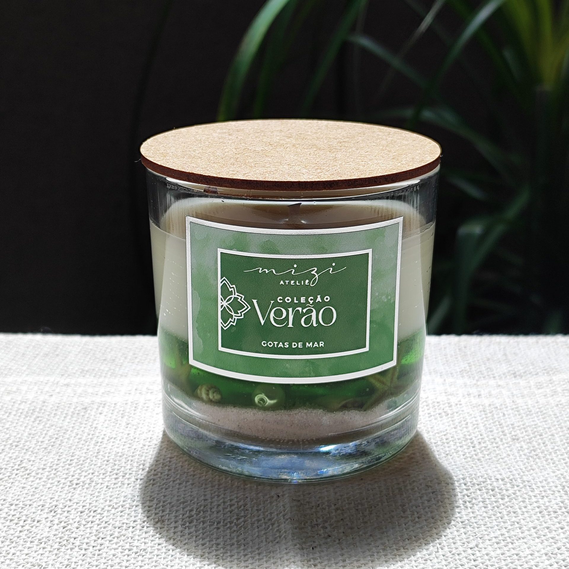 Produzida com parafina em gel e conchas ao fundo, cera de coco acima, tudo com muito aroma e essências premium para perfumar seu ambiente.