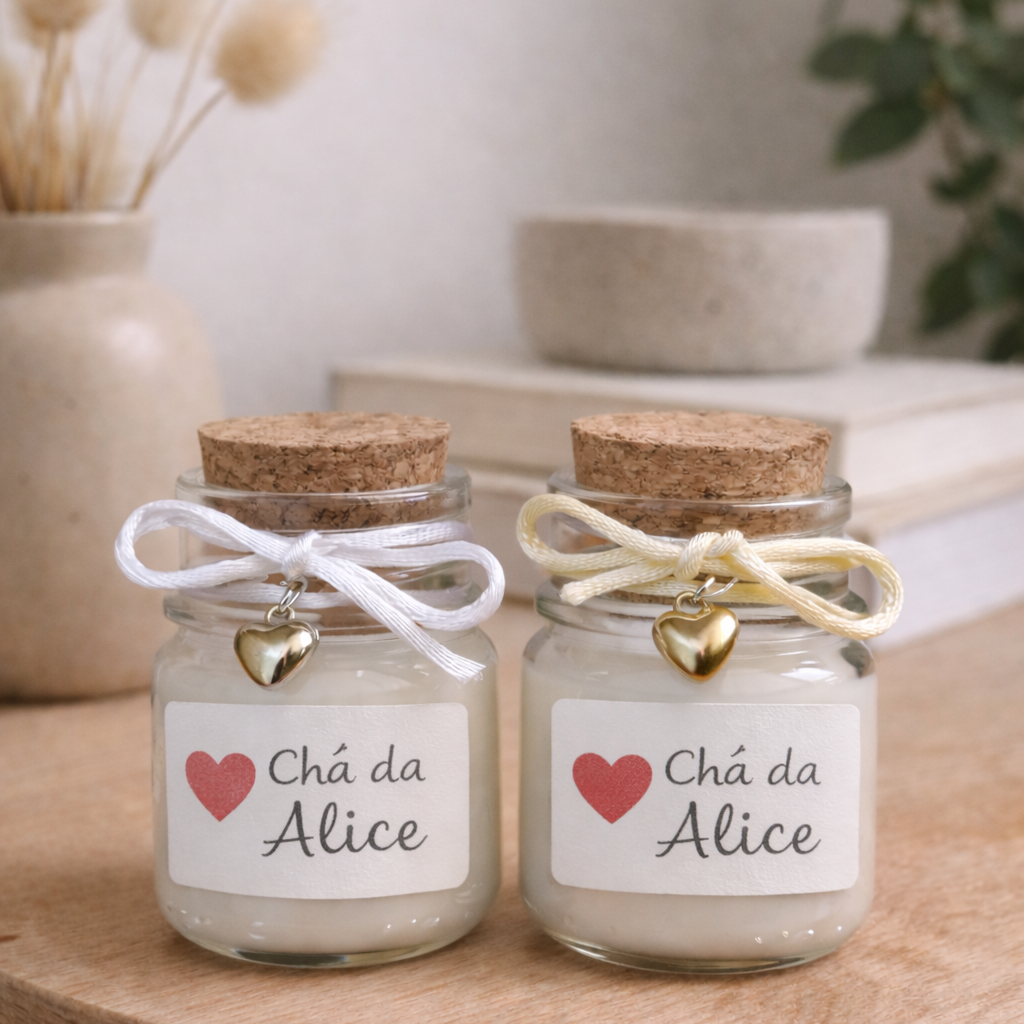Celebre momentos especiais, como aniversários, casamentos, batizados, comemorações, chá de bebê, chá revelação ou simplesmente o amor, com nossa Vela Potinho com Tampa Rolha de 30g em vidro personalizada.