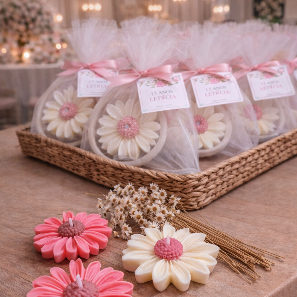 Vela Margarida com 15 gramas de aroma e decoração