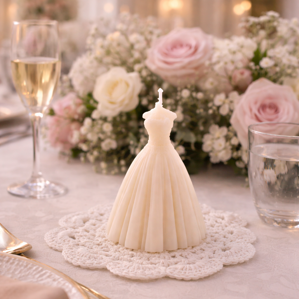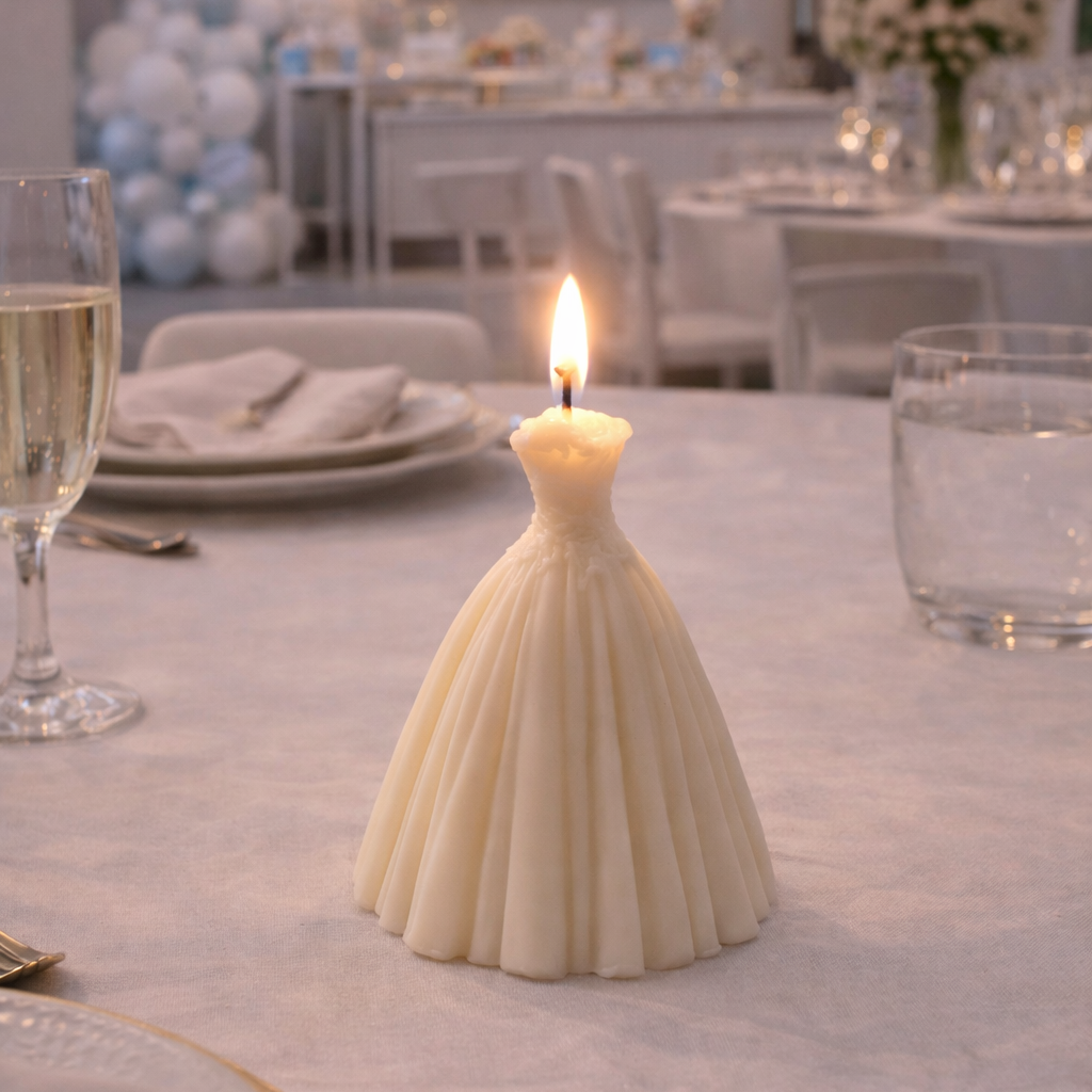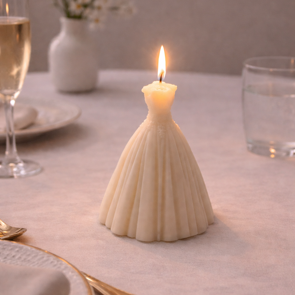 Experimente a combinação perfeita de elegância e aroma da Vela Vestido.  Esta vela é um presente para seus convidados ou para decorar sua casa. Encontre-a na Loja Mizi Ateliê e ilumine e perfume seu ambiente.